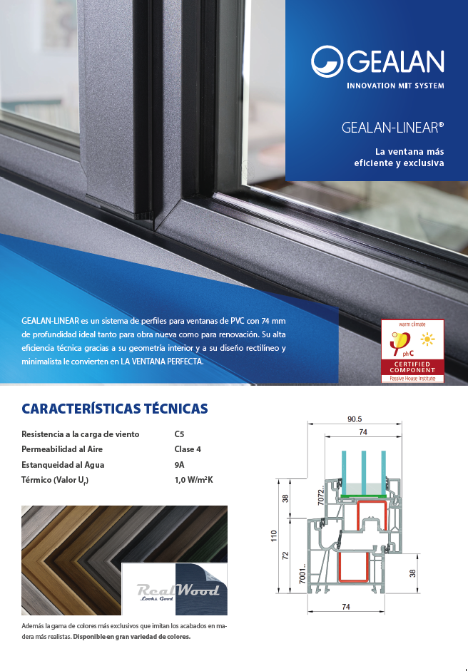 GEALAN-LINEAR es un sistema de perfiles para ventanas de PVC con 74 mm de profundidad ideal tanto para obra nueva como para renovación. Su alta eficiencia técnica gracias a su geometría interior y a su diseño rectilíneo y minimalista le convierten en LA VENTANA PERFECTA.
